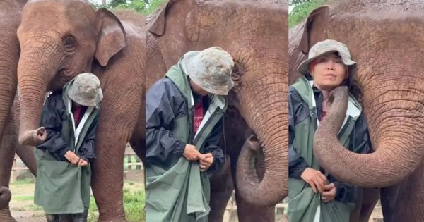 ಮಾಲಕಿ ರೇನ್ಕೋಟ್ ಧರಿಸುತ್ತಿದ್ದ ವೇಳೆ, “ಚಾಬಾ” ಎಂಬ ಆನೆ (elephant) ತನ್ನ ಸೊಂಡಿಲಿನಿಂದ ನಿಧಾನವಾಗಿ ಆಕೆಯನ್ನು ಮುಟ್ಟುತ್ತಾ, ಎಲ್ಲವೂ ಸರಿಯಾಗುತ್ತದೆ ಎಂಬಂತೆ ಸಿಹಿ ಮುತ್ತನ್ನೂ ನೀಡುತ್ತದೆ. ಈ ಕ್ಷಣವು ನೆಟ್ಟಿಗರ ಮನಸ್ಸು ತಟ್ಟಿದ್ದು, ಸಾವಿರಾರು ಜನರಿಂದ ಮೆಚ್ಚುಗೆಗೆ ಪಾತ್ರವಾಗಿದೆ.