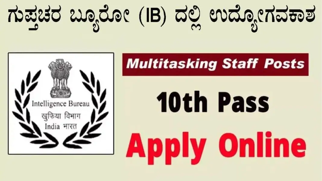 ಜನಸ್ಪಂದನ ನ್ಯೂಸ್‌, ಬೆಂಗಳೂರು : ಗುಪ್ತಚರ ಬ್ಯೂರೋ (IB) ನಲ್ಲಿ ಉದ್ಯೋಗದ ಕನಸು ಕಾಣುವ ಅಭ್ಯರ್ಥಿಗಳಿಗೆ ಉತ್ತಮ ಅವಕಾಶ. ಗೃಹ ಸಚಿವಾಲಯವು ಮಲ್ಟಿ-ಟಾಸ್ಕಿಂಗ್ ಸ್ಟಾಫ್ (MTS) ಹುದ್ದೆಗಳ ನೇಮಕಾತಿ ಪ್ರಕ್ರಿಯೆಯನ್ನು ಅಧಿಕೃತವಾಗಿ ಪ್ರಕಟಿಸಿದೆ.