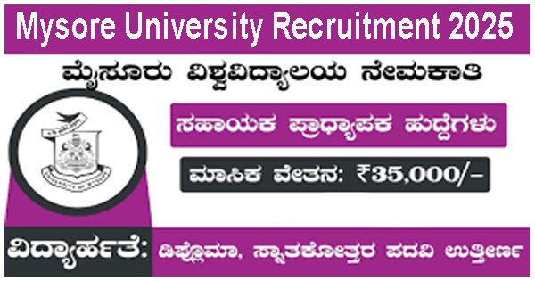 ಜನಸ್ಪಂದನ ನ್ಯೂಸ್, ಮೈಸೂರು : ಮೈಸೂರು ವಿಶ್ವವಿದ್ಯಾಲಯ (University of Mysuru) 2025 ನೇ ಸಾಲಿನ ನೇಮಕಾತಿ ಅಧಿಸೂಚನೆಯನ್ನು ಬಿಡುಗಡೆ ಮಾಡಿದೆ.