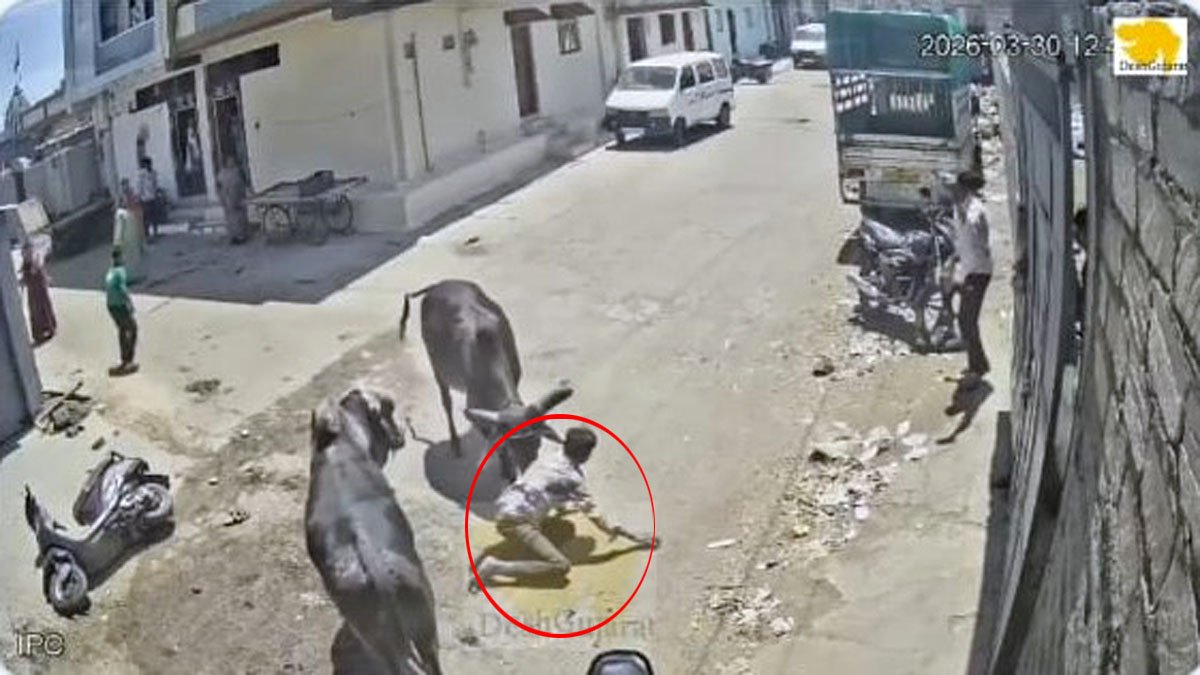 ಮಾಹಿತಿ ಪ್ರಕಾರ, ಈ ಘಟನೆ ರಾಜ್ಕೋಟ್ ಜಿಲ್ಲೆಯ ಕೋಡ್ತಾ ಸಾಂಘನಿ ಪ್ರದೇಶದಲ್ಲಿ ನಡೆದಿದೆ. ದ್ವಿಚಕ್ರ ಸವಾರನ ಮೇಲೆ ಬೀದಿ ಗೂಳಿ ಏಕಾಏಕಿ ಆತನ ಮೇಲೆ ದಾಳಿ ನಡೆಸಿದೆ ಎಂದು ತಿಳಿದುಬಂದಿದೆ.