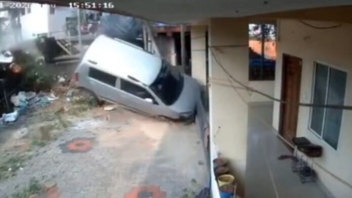 ಅದೇ ಸಮಯದಲ್ಲಿ ಪಕ್ಕದ ರಸ್ತೆಯಲ್ಲಿ ಚಲಿಸುತ್ತಿದ್ದ ದ್ವಿಚಕ್ರ ವಾಹನ ಸವಾರರು ಸ್ವಲ್ಪದರಲ್ಲೇ ಪ್ರಾಣಾಪಾಯದಿಂದ ಪಾರಾಗಿದ್ದಾರೆ. ಆದರೆ ಅಪಘಾತದ ಹೊಡೆತಕ್ಕೆ ಅವರ ಬೈಕ್ಗೆ ಹಾನಿಯಾಗಿದೆ ಎನ್ನಲಾಗಿದೆ.
