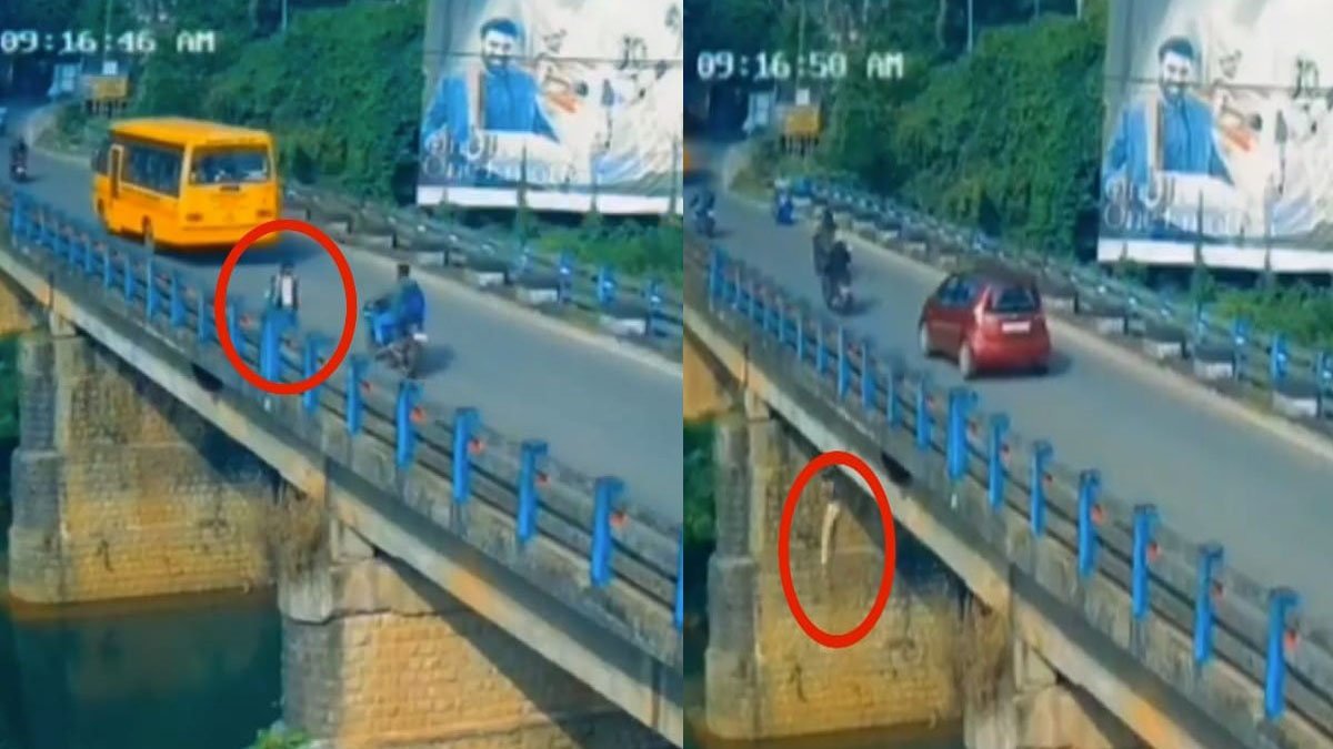 ಜನಸ್ಪಂದನ ನ್ಯೂಸ್‌, ಡೆಸ್ಕ್‌ : ಸೋಶಿಯಲ್ ಮೀಡಿಯಾದಲ್ಲಿ ವೈರಲ್ ಆಗಿರುವ ಸಿಸಿಟಿವಿ (CCTV) ದೃಶ್ಯಾವಳಿ ದೇಶವನ್ನೇ ಬೆಚ್ಚಿಬೀಳಿಸುವಂತಿದೆ. ಶಾಲೆಯಿಂದ ಮನೆಗೆ ಮರಳುತ್ತಿದ್ದ ಅಪ್ರಾಪ್ತ ಬಾಲಕಿ ಏಕಾಏಕಿ ಸೇತುವೆ ಮೇಲಿಂದ ನದಿಗೆ ಜಿಗಿಯುವ ದೃಶ್ಯ ಕ್ಯಾಮೆರಾದಲ್ಲಿ ಸೆರೆಯಾಗಿದೆ.